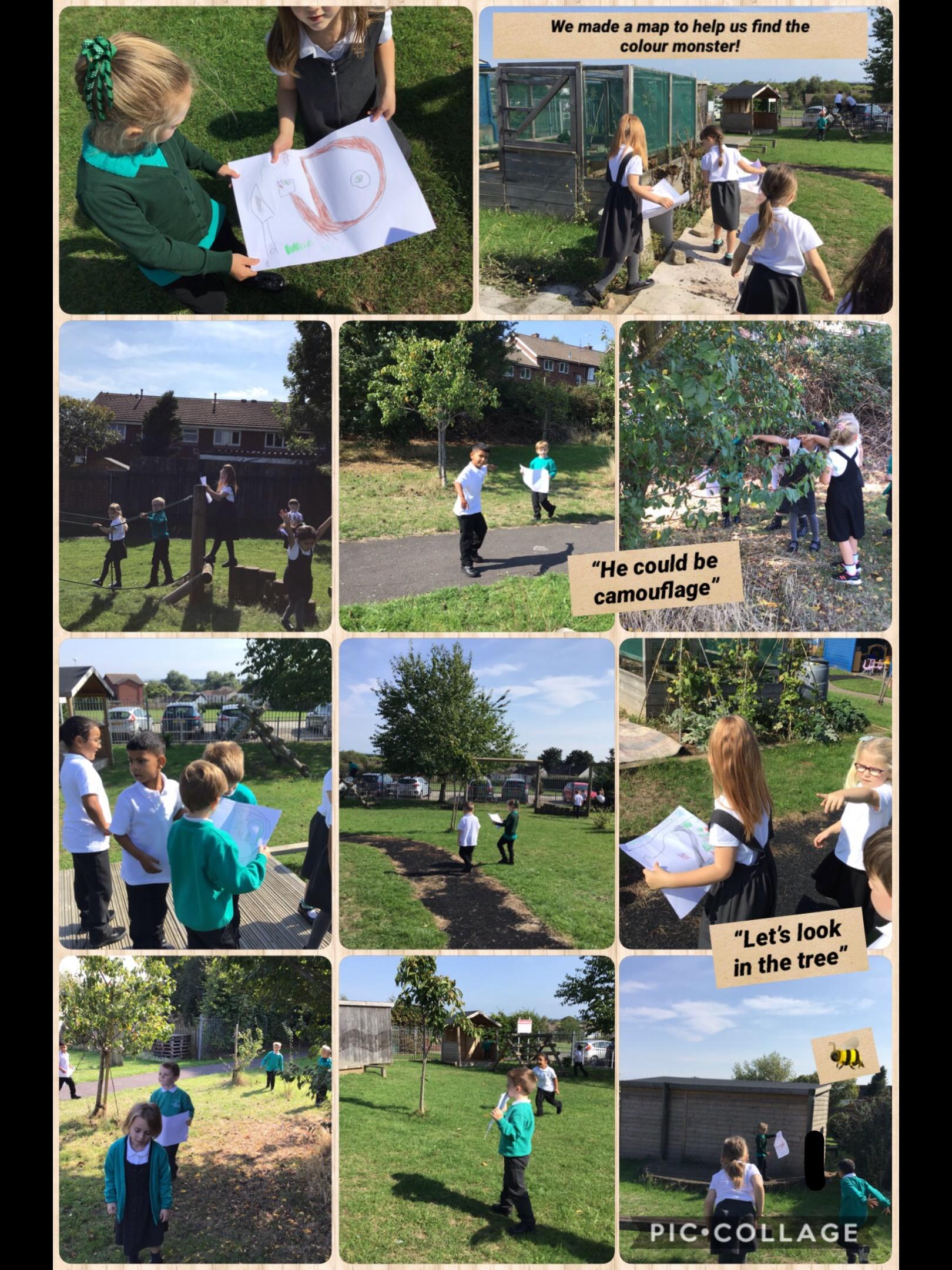 We used our map skills to create a map of our Garden to help us find the missing Colour Monster.