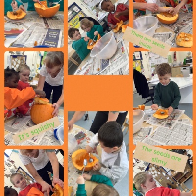 We have been enjoying exploring pumpkins.