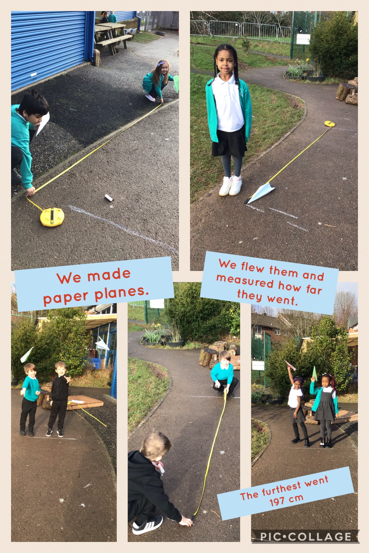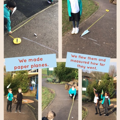 - making paper aeroplanes and flying them inside and outside. We will measure the distance flown.