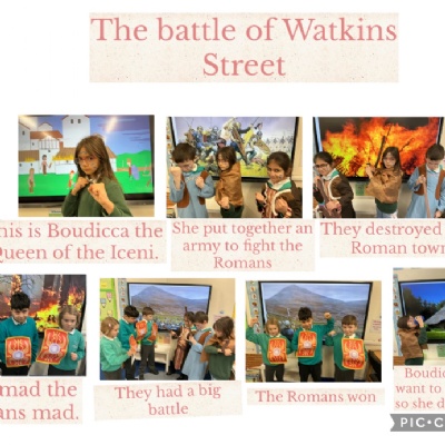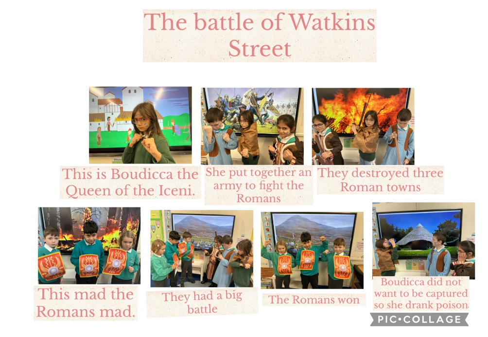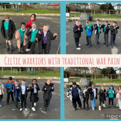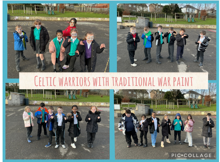 Over the past few weeks we have learnt about the Warrior Queen Boudicca and the Battle of Watling Street. We learnt about the Celts' life and how they lived in Roundhouses. We designed our own war paint and then dressed up as Celts for our immersion day. We have also investigated a Roman diet in lots of fun ways!